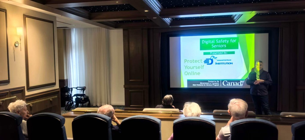 اجتمع أكثر من 20 من كبار السن صباح يوم السبت في Waterford Grand Retirement Residence لحضور محاضرة تثقيفية وتفاعلية حول السلامة والأمن الرقمي، نظمتها Humans for Peace Institution.